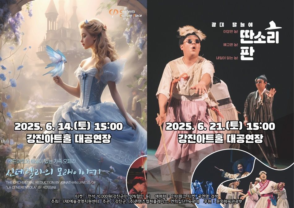 강진아트홀은 다음 달 14일 상연되는 '신데렐라의 모래이야기'에 샌드아트 무료 체험부스와 유료 예매자 선착순 50명을 대상으로 신데렐라 퍼즐 증정 이벤트를 진행하고 이어 21일 '딴소리 판' 공연 현장에서는 암행'거'사 라이브 포토존 등을 운영하며 현장을 찾는 관광객에게 색다른 즐거움을 제공할 예정이다.