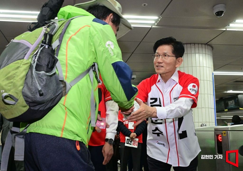 김 후보는 이날 오전 서울 구로구 신도림역 1번 출구에서 출근하는 시민을 상대로 첫 수도권 유세를 펼쳤다. '기호2번 김문수'가 적힌 빨간색 야구 유니폼 유세복을 입은 김 후보는 개찰구를 통과하는 시민들과 악수하며 지지를 호소했다. 비상대책위원장으로 내정된 김용태 의원도 김 후보 옆에서 연신 고개를 숙였다. 일부 지지자들은 "김문수, 대통령"을 환호하거나 '셀카'를 요청했다.