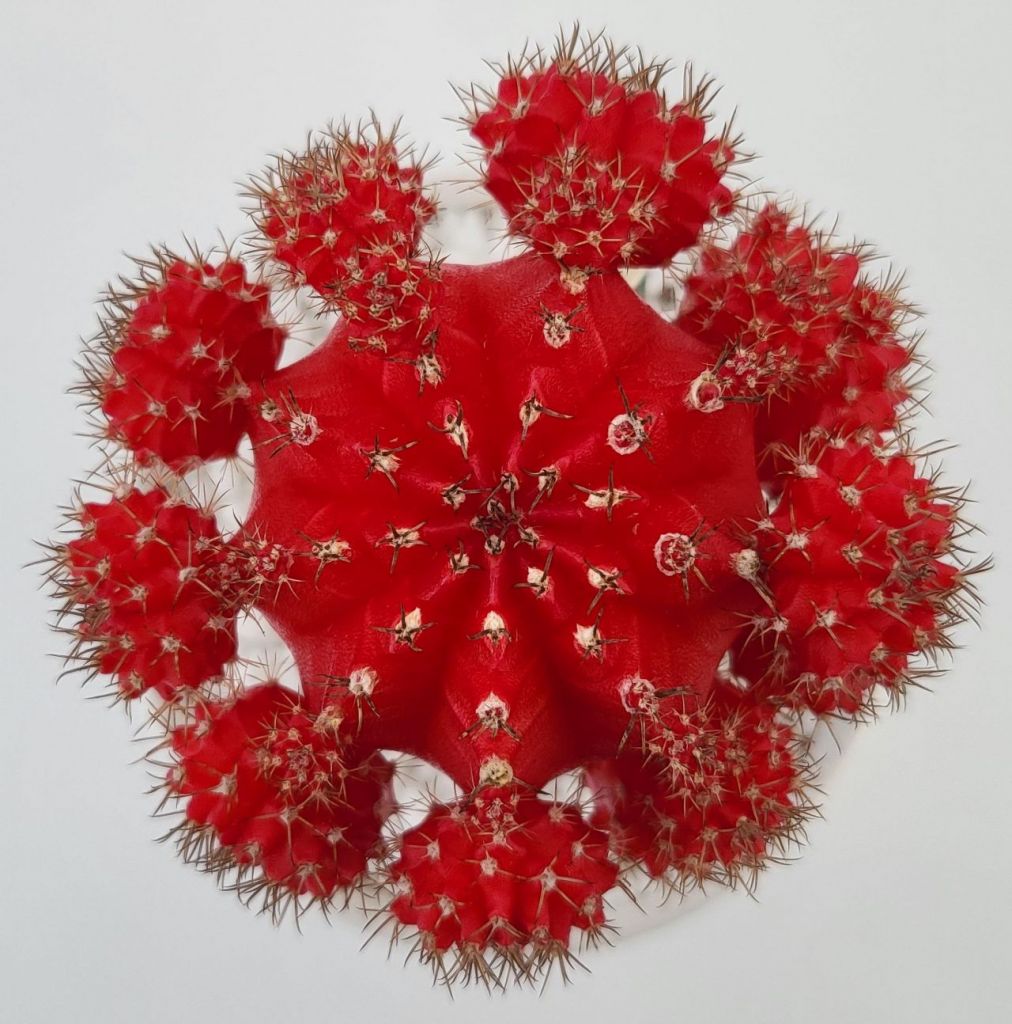 접목 선인장은 녹색 선인장에 접붙여 키우는, 엽록소 없는 화려한 색상의 선인장이다.