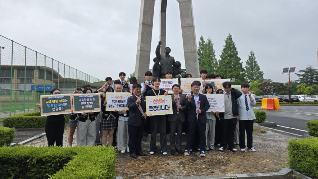 충남 논산계룡교육지원청은 15일 제44회 스승의 날을 맞아 스승의 날 발원지인 강경고등학교에서 '사제동행 등굣길 맞이' 행사를 개최했다.