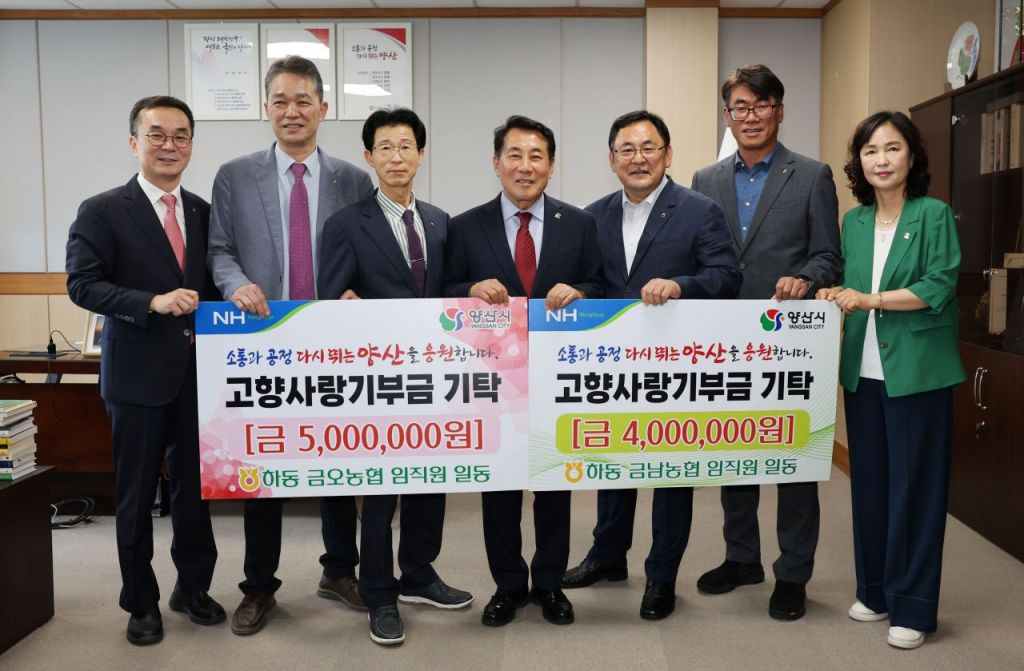 하동 금오농협, 금남농협 기탁식. 양산시 제공
