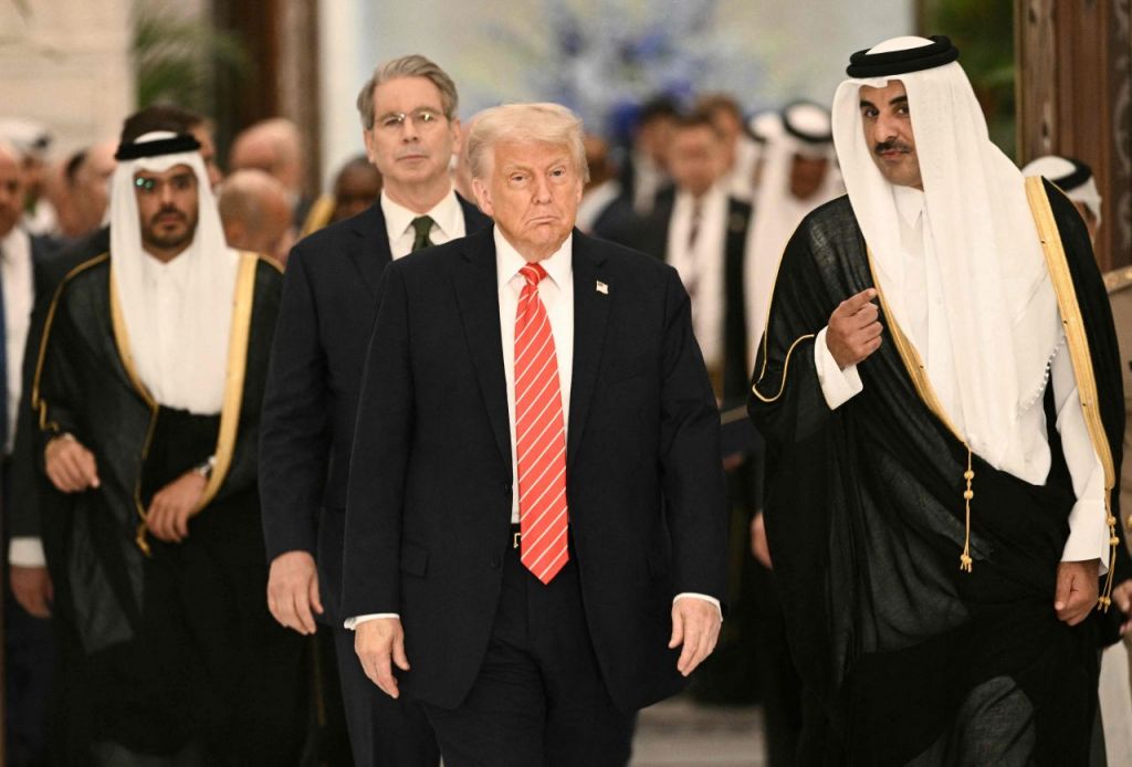 도널드 트럼프 미국 대통령(왼쪽)과 셰이크 타밈 빈 하마드 알타니 카타르 국왕. AFP연합뉴스