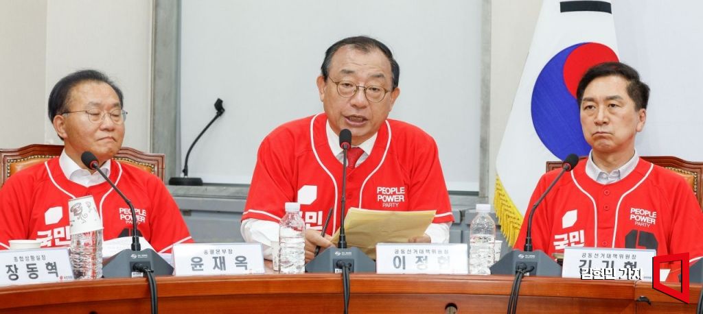 국민의힘 이정현 공동선거대책위원장이 15일 서울 여의도 국회에서 열린 중앙선대위 회의 및 임명장 수여식에서 모두발언을 하고 있다.