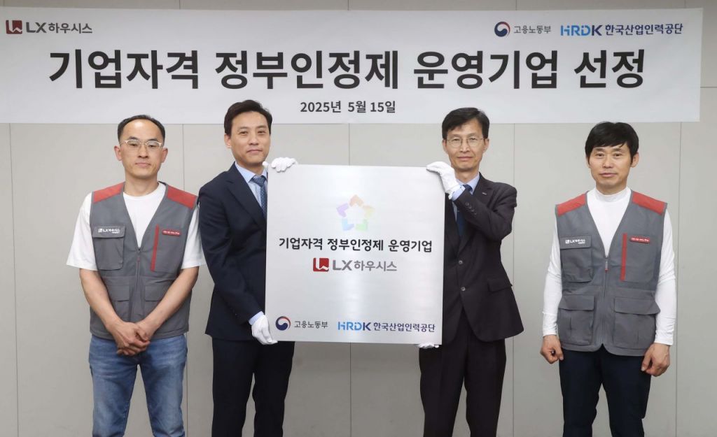 LX하우시스는 고용노동부 산하 한국산업인력공단이 부여하는 '기업자격 정부인정제' 운영 기업에 인테리어 업계 최초로 선정됐다고 15일 밝혔다.