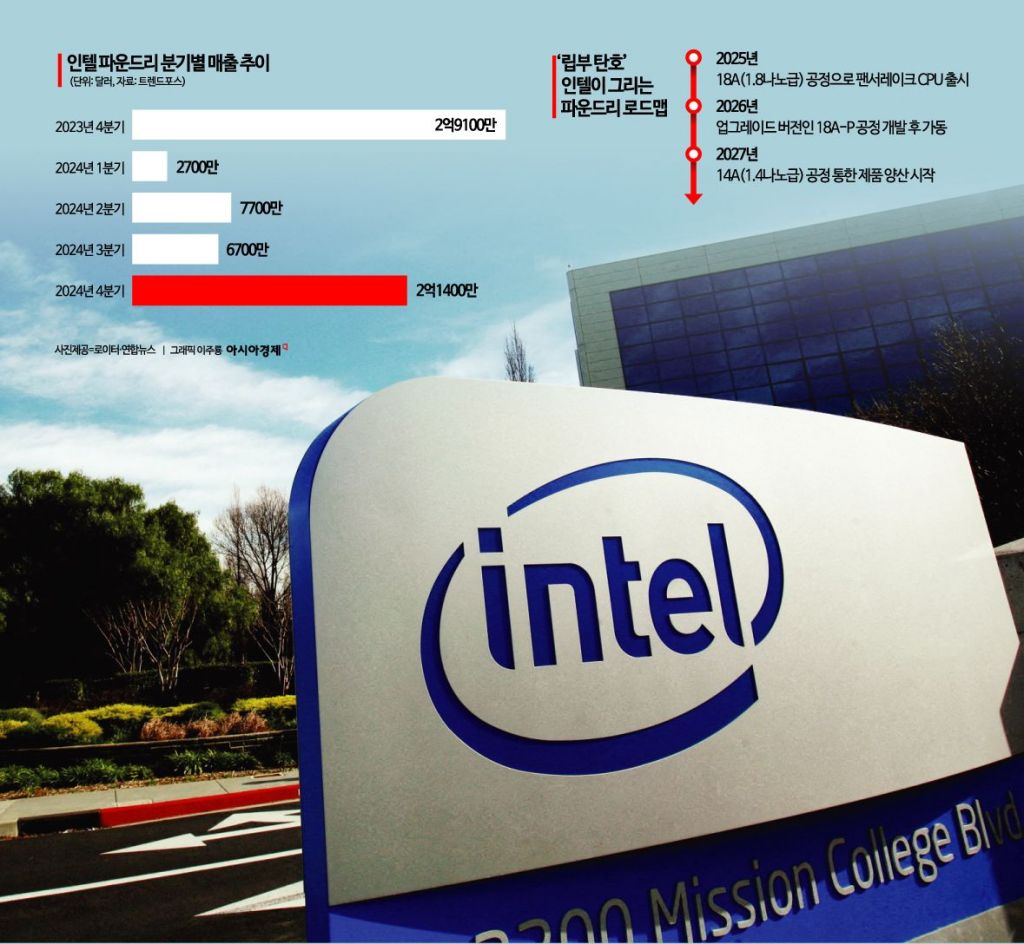 인텔은 올해 하반기에 18A 공정을 통해 만든 '팬서레이크' 중앙처리장치(CPU)를 출시해 양산을 우선 본격화하려 한다. 이어 내년에 전력 사용의 효율성을 높인 '18A-P' 공정을 내놓고 그 뒤에 2027년 1.4나노급인 14A 공정을 도입하려 하고 있다. 1.4나노 공정은 업계에서 최첨단 칩 생산 공정으로 불리며 인텔이 이 공정을 통한 칩 생산에 성공하면, 한동안 TSMC의 독주로 조용했던 파운드리 시장 경쟁은 다시 뜨거워질 것으로 예상된다. TSMC는 1.4나노 공정을 2028년부터 해내겠다고 밝혔고 삼성전자도 2027년 양산을 목표로 하고 있다.