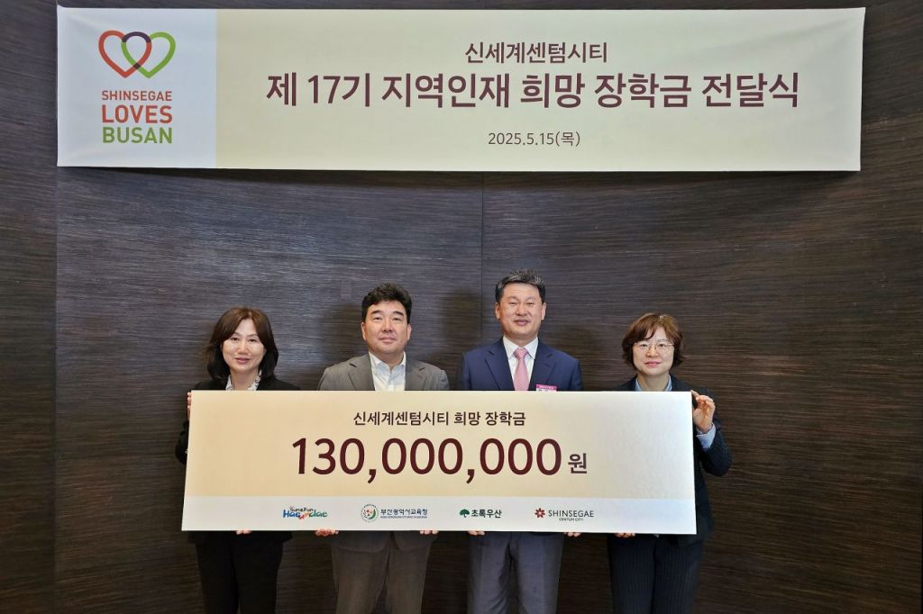 신세계 센텀시티 점장 박순민 전무는 "지역의 미래를 이끌어 갈 리더를 양성하기 위해 지속적으로 장학금을 전달하고 있다"며 "앞으로도 더욱 적극적인 사회공헌 활동으로 지역과 상생하며 기업의 사회적 책임을 다할 것"이라고 말했다.