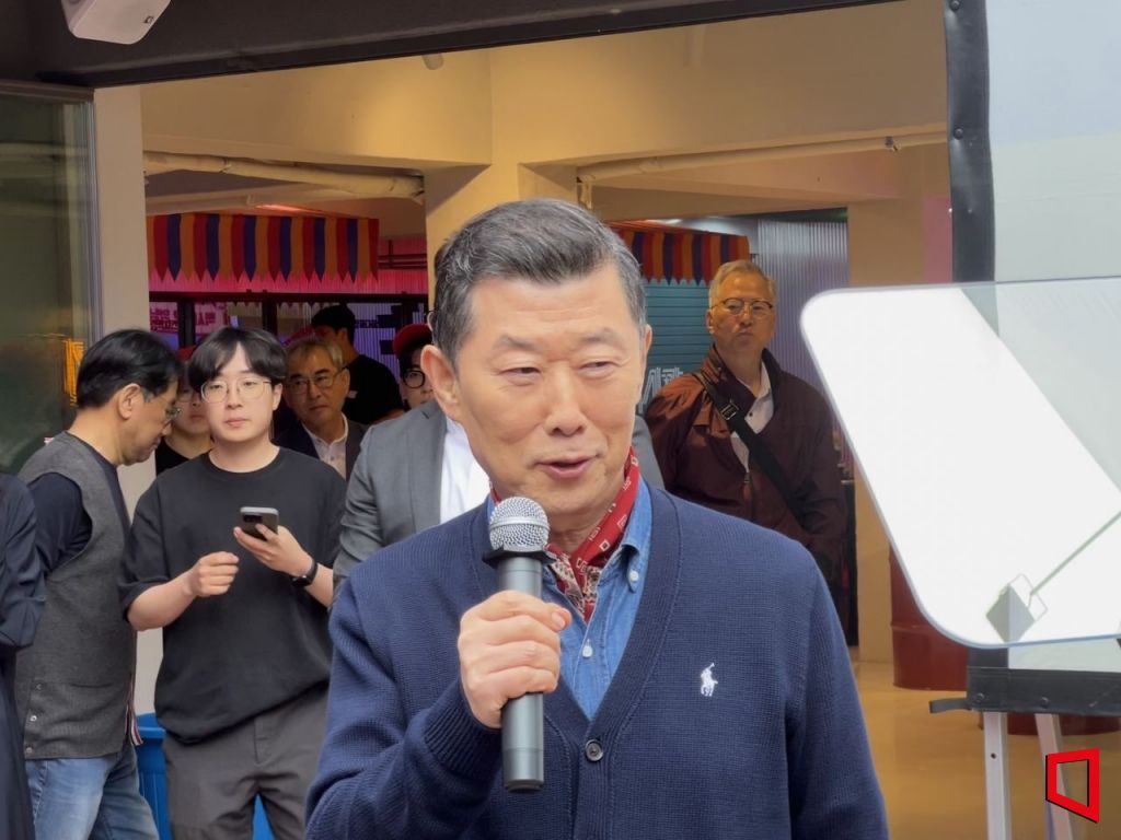 15일 서울 성동구 성수동에서 열린 '장하다 하림 맥시칸' 팝업스토어에서 김홍국 하림그룹 회장이 참석해 발언하고 있다. 한예주 기자
