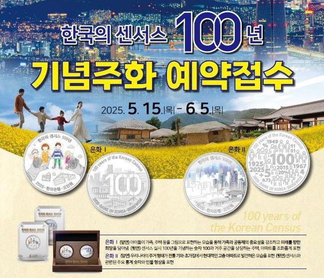 한국조폐공사는 '한국의 센서스 100년 기념주화'를 출시해 판매한다고 15일 밝혔다.