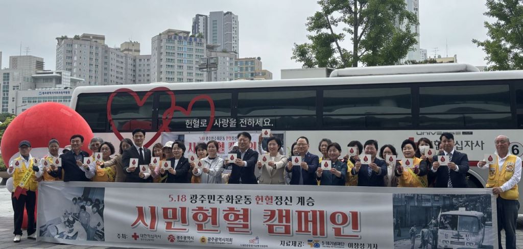 시는 대한적십자사 광주·전남혈액원, 광주시의회, 5·18행사위원회, 헌혈 홍보위원 등과 함께 헌혈 동참을 응원하는 퍼포먼스도 펼쳐 5·18의 숭고한 정신을 계승하고 생명 나눔의 가치를 되새겼다.