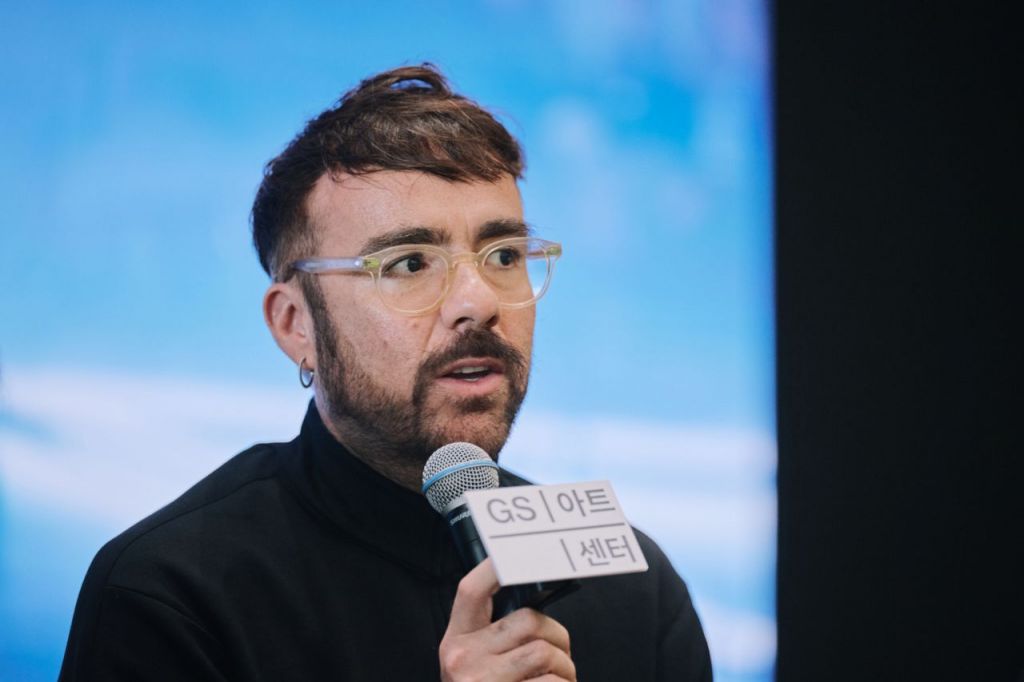 스페인 안무가 마르코스 모라우가 14일 서울 강남구 GS아트센터에서 열린 기자간담회에서 자신이 안무한 작품 '파시오나리아'와 '죽음의 무도'를 설명하고 있다. [사진 제공= GS아트센터 (c)SihoonKim]
