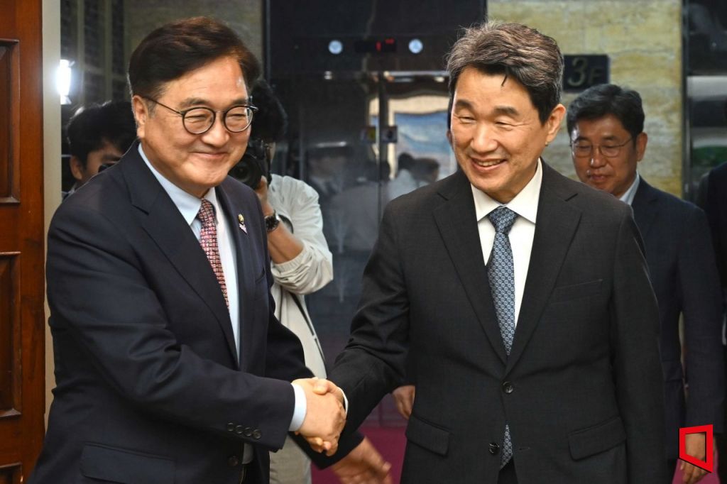 우원식 국회의장과 이주호 대통령 권한대행 부총리 겸 교육부 장관이 15일 국회에서 만나 접견실로 들어서고 있다. 2025.5.15 국회사진기자단