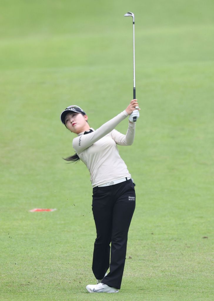 이예원이 두산 매치플레이 조별리그 2차전 2번 홀에서 아이언 샷을 하고 있다. KLPGA
