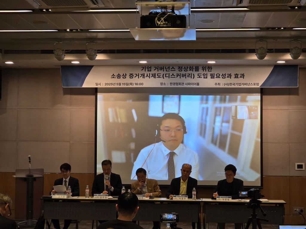 한국기업거버넌스포럼은 15일 서울 여의도 한국경제인협회에서 '기업 거버넌스 정상화를 위한 소송상 증거개시제도(디스커버리) 도입 필요성과 효과'라는 주제로 세미나를 진행했다.