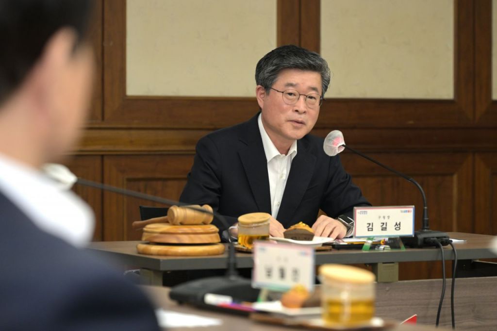 2025년 제2회 중구인재육성장학재단 이사회에서 김길성 서울 중구청장이 발언하고 있다. 중구 제공.
