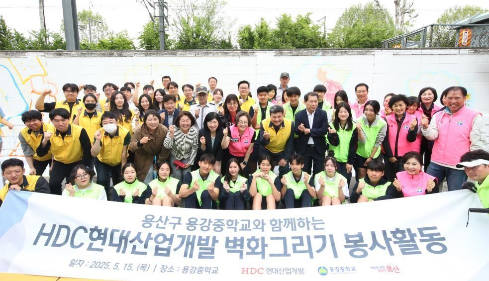 이번 행사는 HDC현대산업개발의 지역사회 공헌사업의 일환으로, 청소년들에게 창의적 예술 체험 기회를 제공하고 쾌적한 교육환경을 조성하기 위해 마련됐다. 현장에는 HDC현대산업개발 관계자 20명, 용강중학교 학생 10여 명 등 총 40여 명이 함께해 밝고 희망적인 메시지를 담은 벽화를 직접 그렸다.