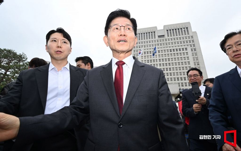 김문수 국민의힘 대선 후보가 15일 서울 서초구 대법원 앞에서 열린 사법부 수호 및 민주당 규탄대회에서 발언하고 있다. 2025.5.15 김현민 기자