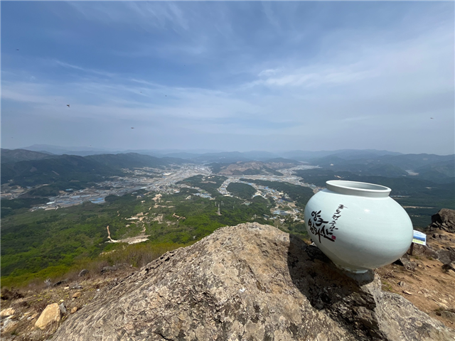 강원특별자치도 양구군의 봉화산 모습. 백자모양의 정상석이 있어 SNS에서 사진찍기 좋은 명소로 인기가 있다. 사진=강원특별자치도청 제공