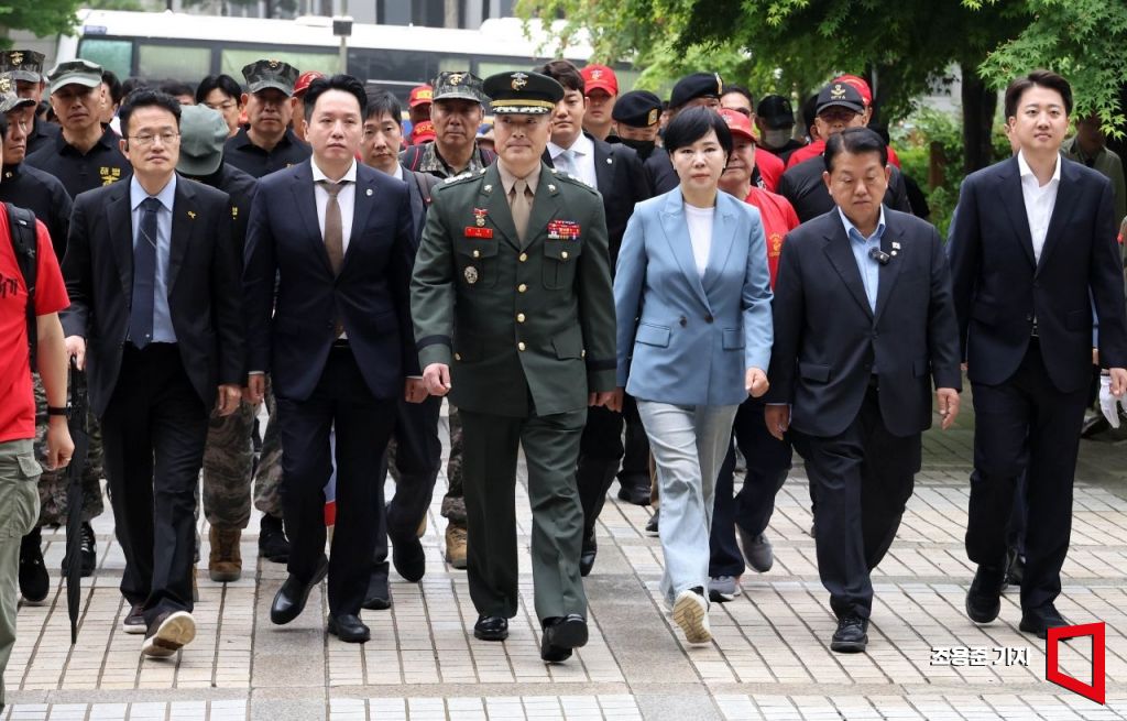 해병대 채모 상병 순직 사건과 관련해 1심에서 무죄를 선고받은 박정훈 전 해병대 수사단장(대령)이 16일 서울 서초구 서울고등법원에서 열린 2심 2차 공판준비기일에 출석하고 있다.