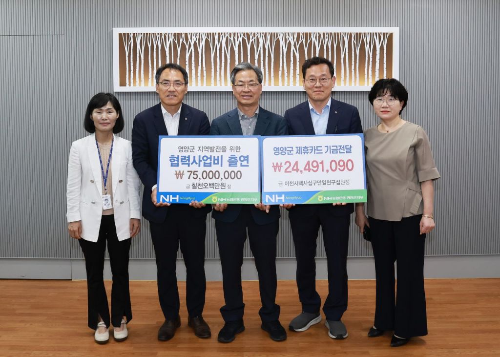 경북 영양군은 16일 NH농협은행 영양군지부로부터 영양군 금고계약에 따른 협력사업비 7500만원과 제휴카드 적립기금 2449만원을 전달받았다.