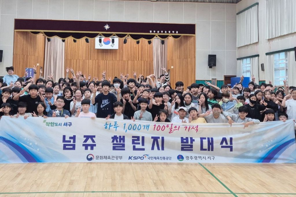 광주시 서구(구청장 김이강)가 관내 초등학교와 연계한 줄넘기 프로젝트 '하루 줄넘기 1000개, 넘쥬 챌린지'를 진행한다