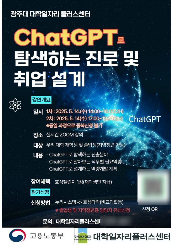 광주대학교 대학일자리플러스센터는 최근 디지털 역량 강화를 위해'ChatGPT로 탐색하는 진로 및 취업 설계' 과정을 운영했다고 16일 밝혔다.