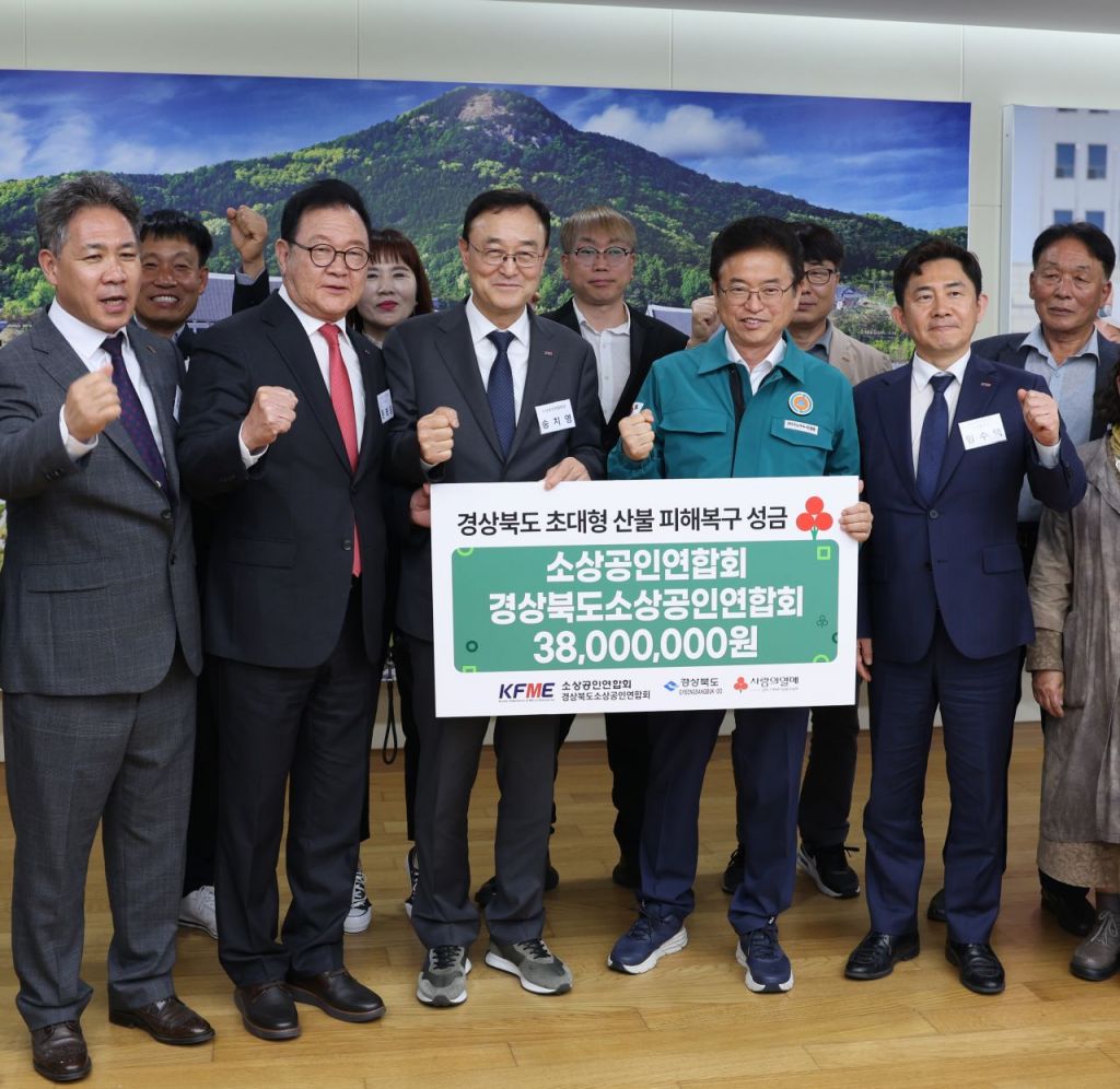 이 경북도지사는 "소공연의 성금 전달에 감사의 인사를 전하며, 경북도청 차원에서 피해지역을 관광지로 육성·개발할 것을 검토하고 있다"며 "도청에 소상공인정책과를 신설하는 등 경북도청도 소상공인을 먼저 살리는 데 최선의 노력을 다하겠다"고 화답했다.