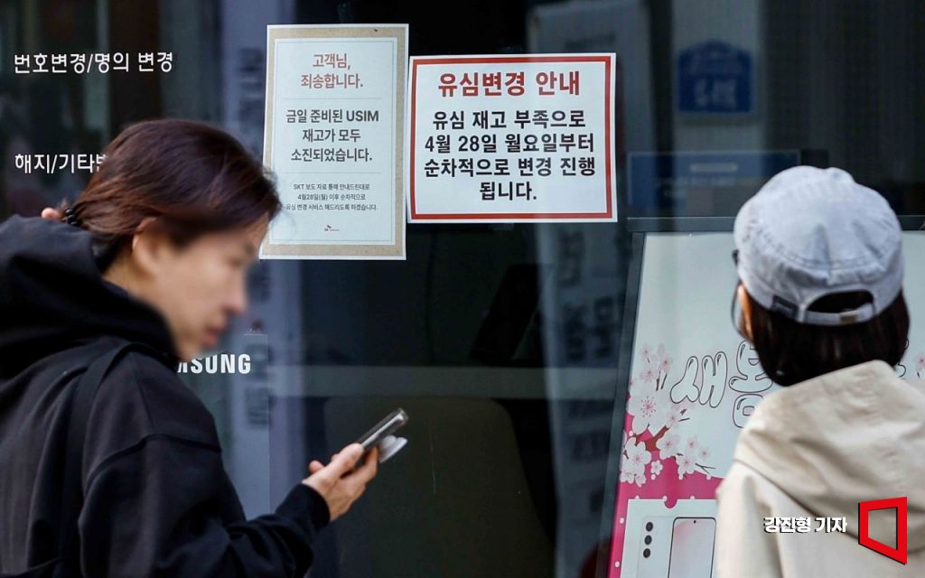 28일 서울 마포구 한 SK텔레콤 직영 대리점을 찾은 고객들이 유심을 교체하기 위해 기다리고 있다. SK텔레콤은 오늘부터 가입자들에게 유심 무료 교체서비스를 제공할 예정이다. 2025.4.28. 강진형 기자