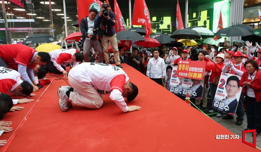 [포토] 청주 시민들에게 큰절하는 김문수 후보