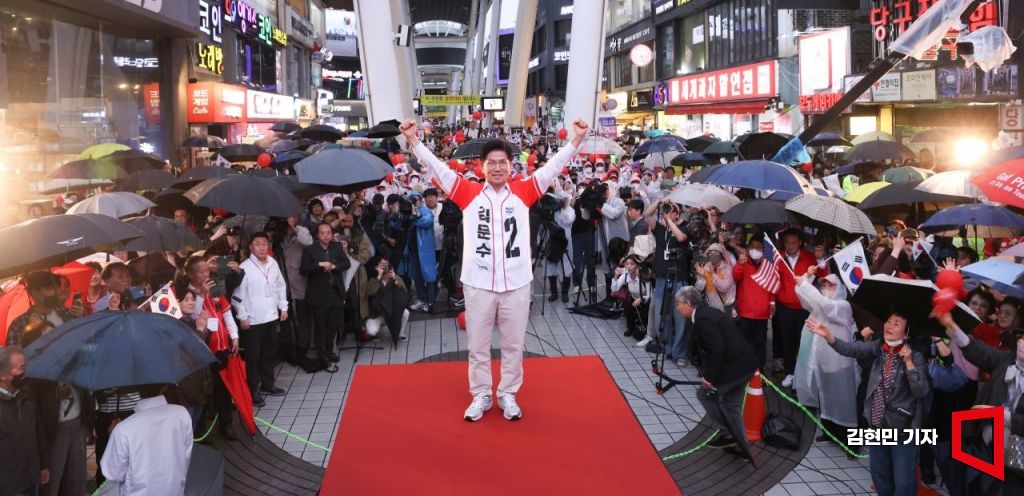 [포토] 대전 유권자 앞에 선 국민의힘 김문수