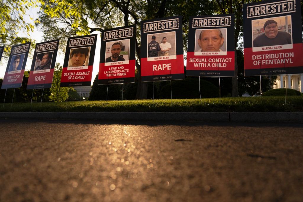 백악관 진입로에 체포된 불법 체류자의 사진이 줄지어 붙어있다. AP연합뉴스