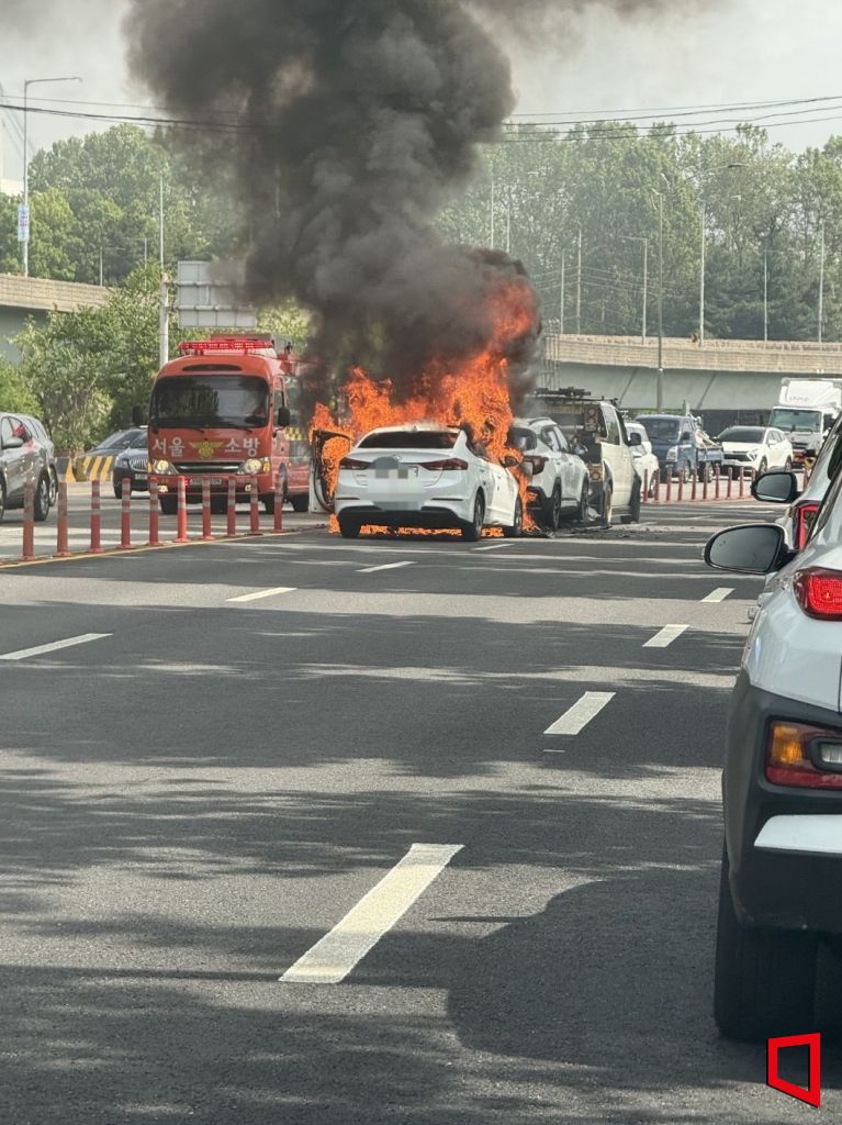 17일 서울 마포소방서에 따르면 이날 오전 9시 59분 성산대교 북단에서 승용차 화재 신고가 접수됐다. 현장에 출동한 소방은 오전 10시 46분 화재를 진압했다.