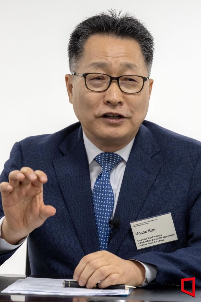 김언수 현대자동차 인도아중동대권역장 부사장이 14일(현지시간) 사우디아라비아 킹 압둘라 경제도시에서 기자들과 간담회를 하고 있다. 현대차