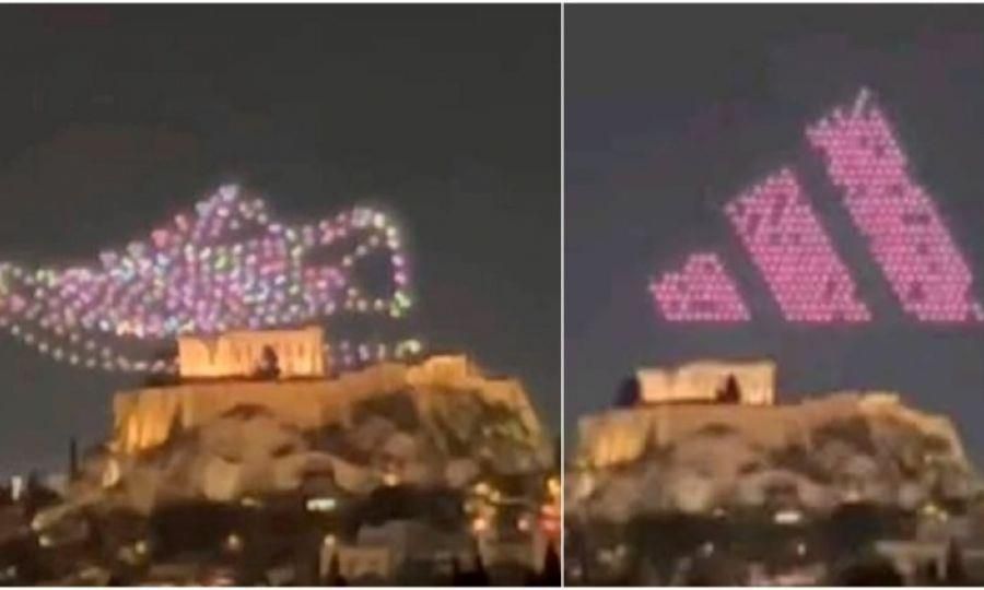 촬영 각도와 원근법으로 인해 드론이 형상화한 아디다스 운동화가 그리스 관광의 상징인 아크로폴리스를 바로 위에서 밟은 듯한 형상을 연출된 것이 문제였다.