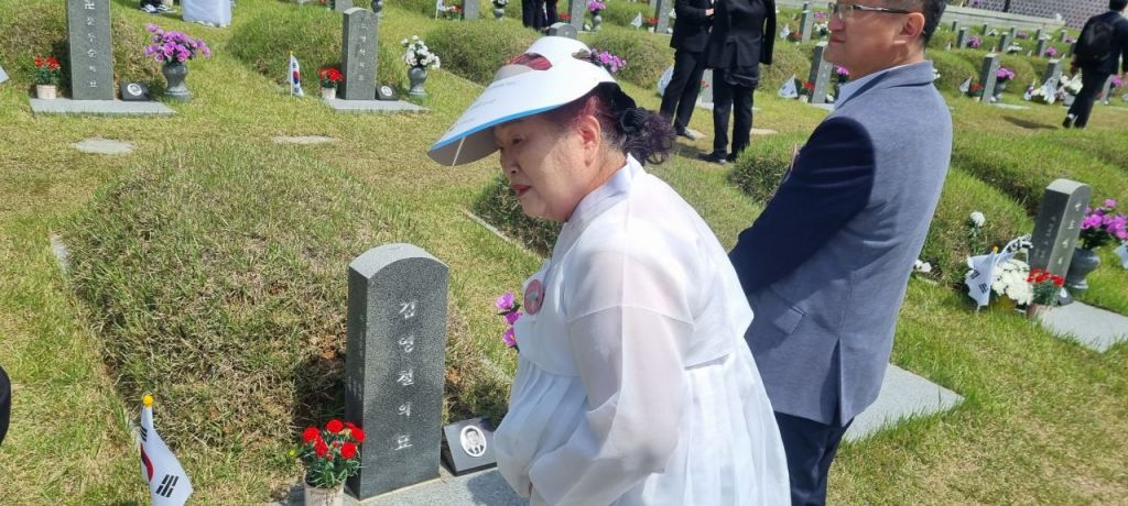 또 노벨문학상을 수상한 한강 작가의 소설 '소년이 온다' 속 주인공인 문재학 열사 묘역을 찾는 참배객의 발걸음이 끊이질 않았고, 참배객들을 맞이하는 문 열사의 어머니 김길자 씨를 위로했다.