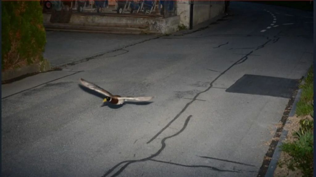 스위스 중부 한 마을의 교통 카메라에 청둥오리 한 마리가 과속하는 모습이 포착돼 화제다.