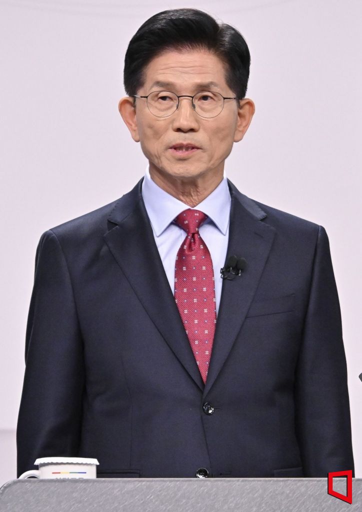 김문수 국민의힘 대선 후보가 중앙선거방송토론위원회 주관으로 18일 서울 상암동 SBS 프리즘센터 스튜디오에서 열린 제21대 대선 1차 후보자 토론회를 준비하고 있다. 2025.5.18 국회사진기자단