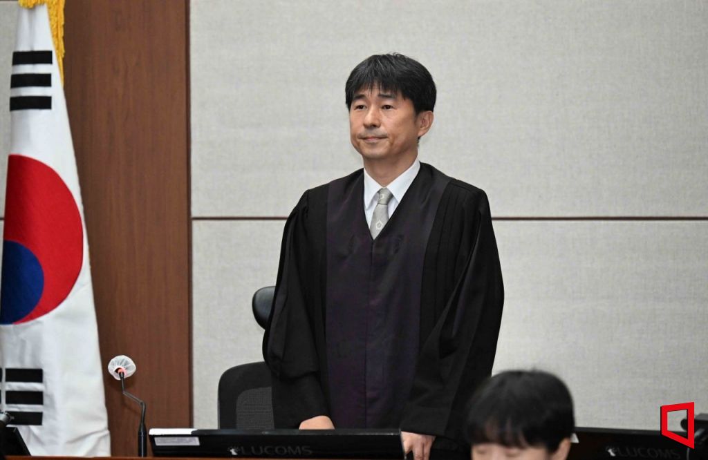 지귀연 부장판사가 21일 서울 서초동 서울중앙지법에서 열린 내란 우두머리 혐의 형사재판 2번째 공판에서 인사하고 있다. 2025.4.21 사진공동취재단