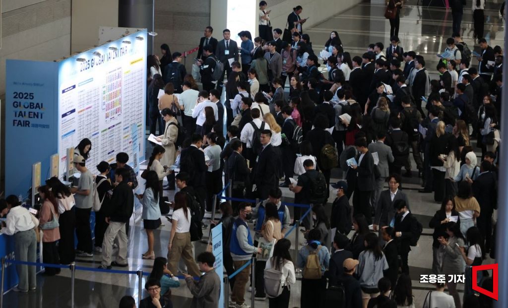 19일 서울 강남구 삼성동 코엑스에서 열린 '2025 글로벌 탤런트 페어'(Global Talent Fair)' 를 찾은 많은 취업 준비생과 외국인 유학생들이 입장하고 있다.