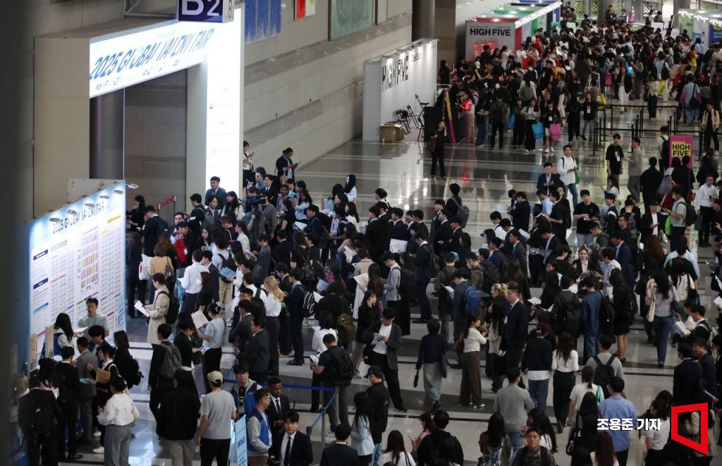 19일 서울 강남구 삼성동 코엑스에서 열린 '2025 글로벌 탤런트 페어'(Global Talent Fair)' 를 찾은 많은 취업 준비생과 외국인 유학생들이 입장 하고 있다.
