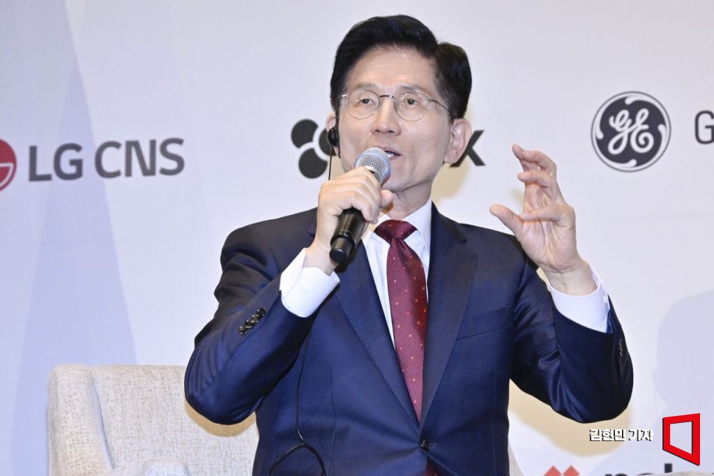 김문수 국민의힘 대선 후보가 19일 서울 종로구 포시즌스호텔에서 열린 주한미국상공회의소(AMCHAM·암참) 초청 특별 오찬 간담회에 참석해 제임스 김 암참 회장과 대담하고 있다.