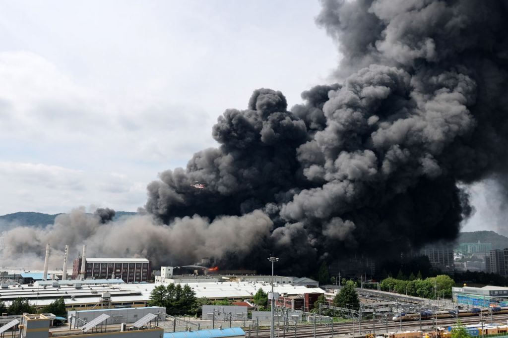 금호타이어 광주공장에서 발생한 대형 화재로 검은 연기가 하늘을 뒤덮고 있다. 광산구 제공