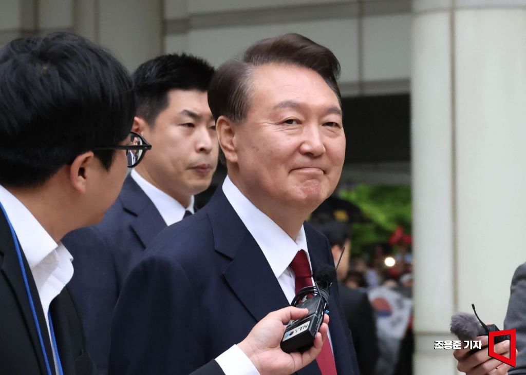 윤석열 전 대통령이 19일 서울 서초구 중앙지방법원에서 열린 내란 우두머리 혐의, 직권남용 권리행사방해 혐의 사건 4차 공판을 마친 뒤 법정을 나서고 있다.