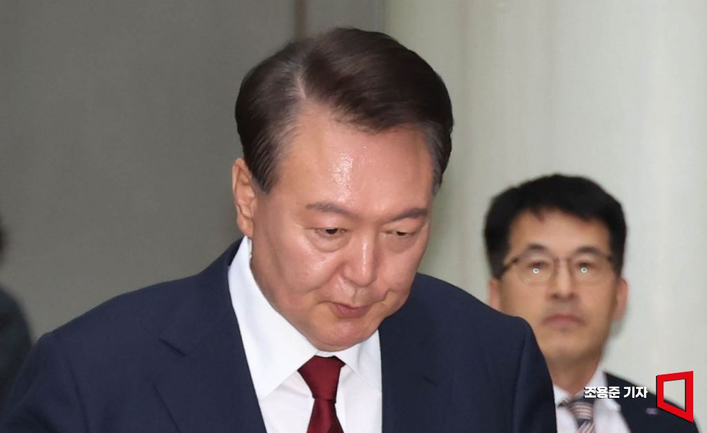 윤석열 전 대통령이 19일 서울 서초구 중앙지방법원에서 열린 내란 우두머리 혐의, 직권남용 권리행사방해 혐의 사건 4차 공판을 마친 뒤 법정을 나서고 있다.