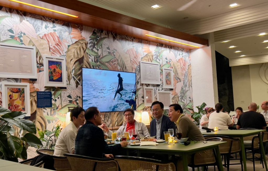국민의힘 대선 선대위 유상범 단일화추진본부장, 김대식 대외협력본부장, 조광한 대외협력부본부장, 이성배 선대위 대변인이 19일 홍준표 전 대구시장의 선대위 합류를 설득하기 위해 미국 하와이에 도착, 홍 전 시장을 만나고 있다. 이성배 대변인·연합뉴스