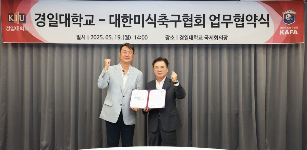 경일대학교(총장 정현태)는 19일 대학 본관 국제회의장에서 대한미식축구협회(회장 유호정)와 업무협약(MOU)을 체결하고 미식축구의 발전과 전문 인재 양성을 위해 상호 협력하기로 했다.