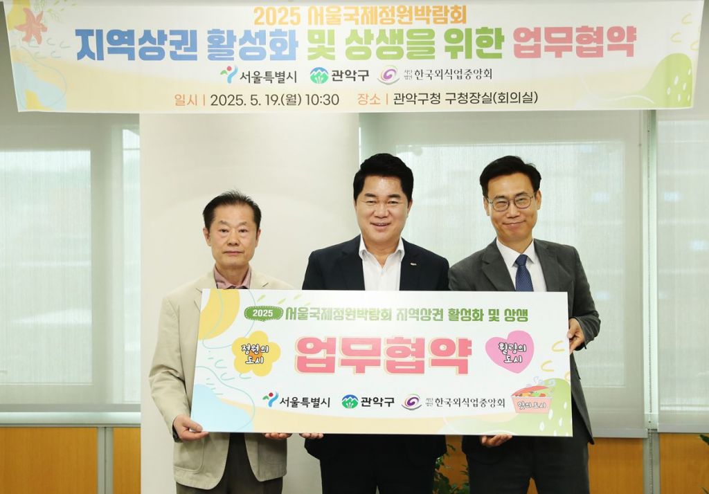 이에 구는 19일 서울시, 한국외식업중앙회 관악구지회와 '지역상권활성화 및 상생'을 위한 협약을 체결했다. 이번 협약으로 박람회 가든투어 참여자가 7개 지정 정원 중 6개 이상에서 스탬프 인증을 받고 지정 업소에 제시하면 할인 혜택을 받을 수 있다.