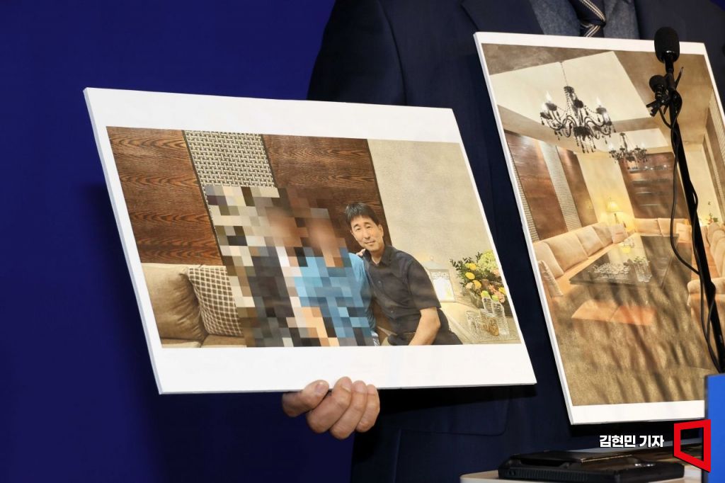 노종면 더불어민주당 의원이 19일 서울 여의도 중앙당사에서 지귀연 서울중앙지법 부장판사의 '룸살롱 접대' 의혹 관련 사진을 공개하고 있다. 민주당 중앙선대위는 이날 "지 판사가 룸살롱 접대 의혹과 관련해 룸살롱 출입 자체를 부인했다"며 "이와 관련해 사진 공개를 결정했다고 밝혔다. 2025.5.19 김현민 기자
