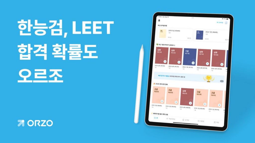 지난해까지 중·고등학생 위주의 수능·내신 학습 서비스를 운영해온 오르조는 올해부터 성인 교육으로 서비스 확대를 본격 추진, 지난 2월 공무원 시험 시장 진출에 이어 이번에 한능검, LEET 기출문제 학습 모드를 선보이게 됐다.