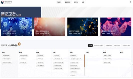 질병관리청 국립보건연구원이 국내 최초로 질병재난 관련 온라인 정보를 체계적으로 수집·정리해 보존하는 '질병재난아카이브(SAVE)' 홈페이지를 20일 공개했다.