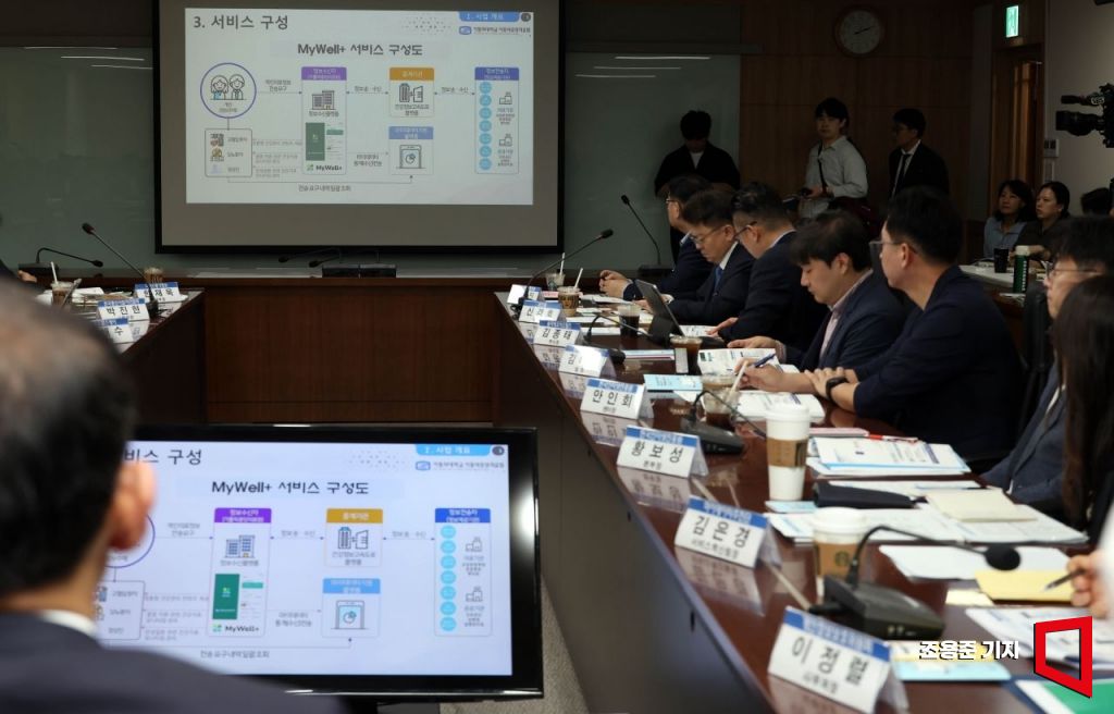20일 서울 종로구 정부서울청사 개인정보보호위원회에서 열린 마이데이터 선도서비스 시연회에서 가톨릭중앙의료원의 서비스가 시연되고 있다.
